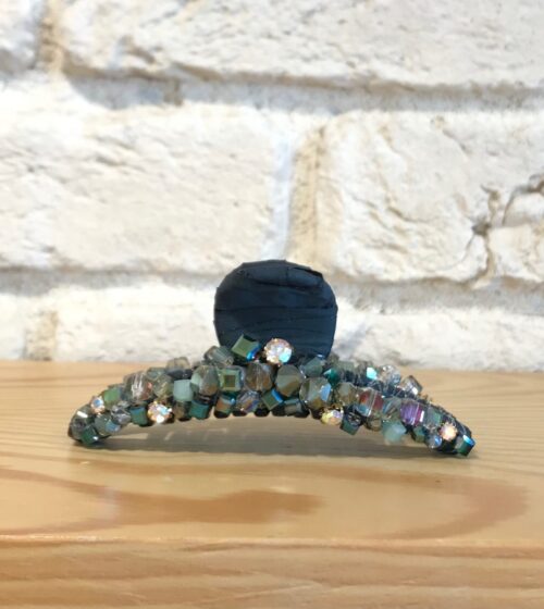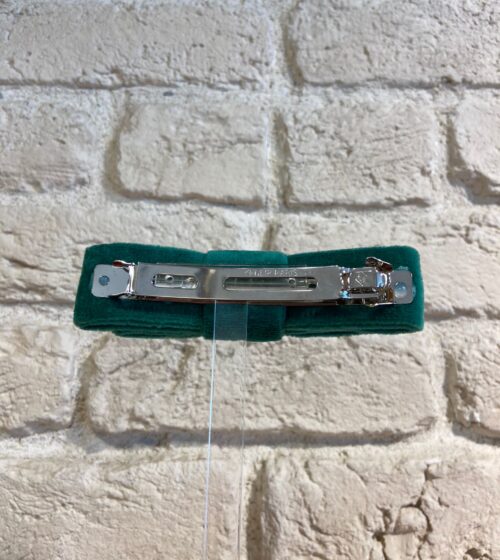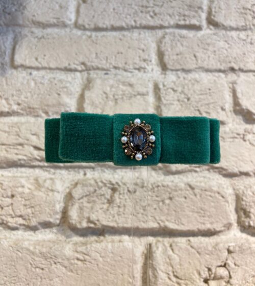 Yeşil Kadife Kristal Taşlı ve İncili At Kuyruğu Toka