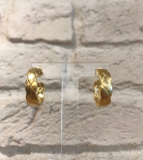 Gold Geometrik Şekilli Gerçek İncili Küpe