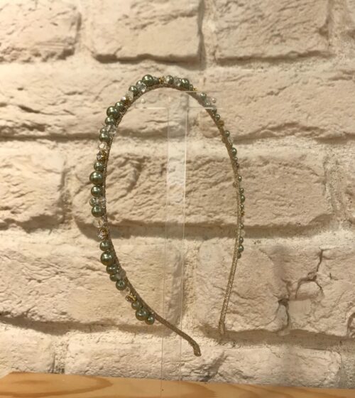 Açık Yeşil El Yapımı Taşlı Kalın Taç