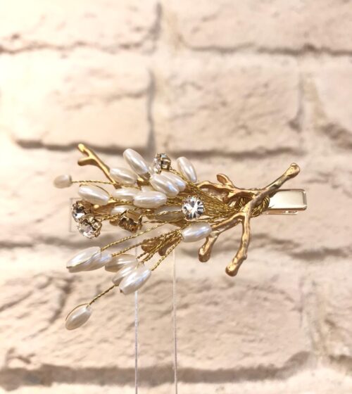 Gerçek İnci Ve Kristal Taşlı Yaprak Formda Toka