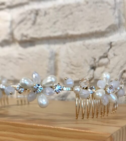 Gold İncili Çiçek ve Kristal Taş Detaylı Saç Aksesuarı