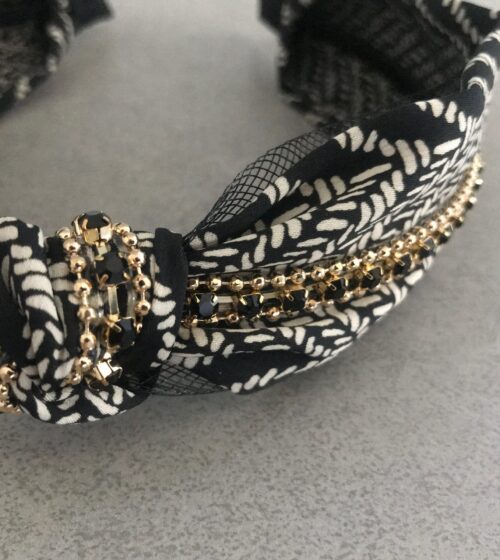 Siyah Desenli Kumaş Ve Kristal Taş Detaylı Taç