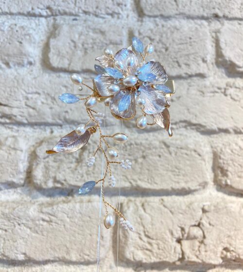 Gümüş Metal Çiçek ve İncili Tarak Taç