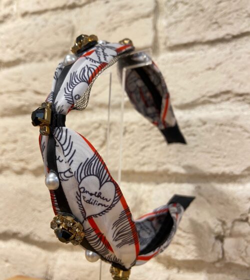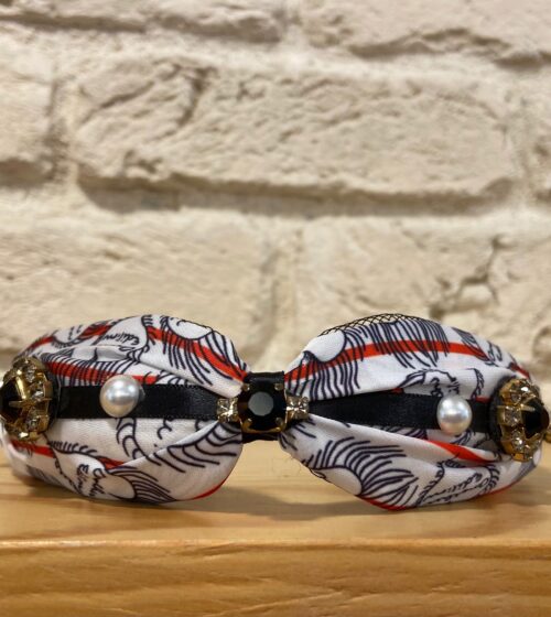 Çok Renkli Kumaş Detaylı Kristal Taşlı Taç