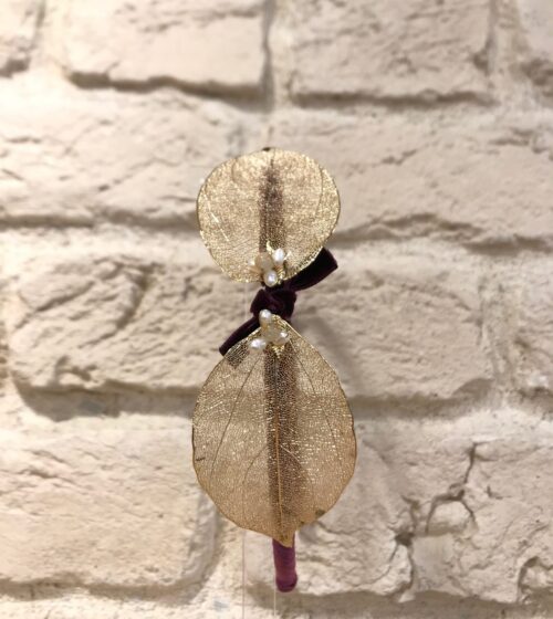 Gold Yaprak Gerçek İncili Bordo Kurdela Detaylı Toka