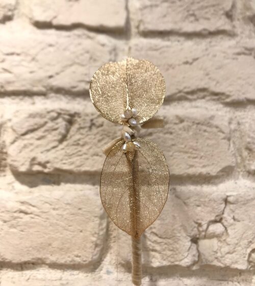 Gold Yaprak Gerçek İncili Ekru Kurdela Detaylı Toka