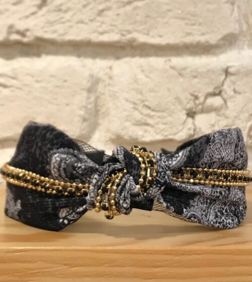 Taba Şal Desenli Kumaş Ve Kristal Taş Detaylı Taç