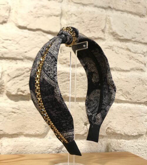 Lacivert Şal Desenli Kumaş Ve Kristal Taş Detaylı Taç