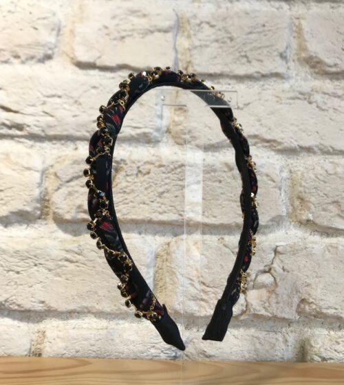 Siyah Kumaş Ve Kristal Taş Detaylı Taç
