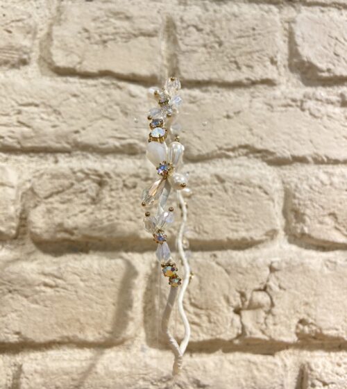 Beyaz Kristal Taşlı Ve İncili Taç
