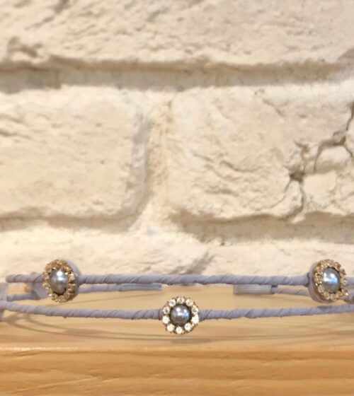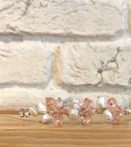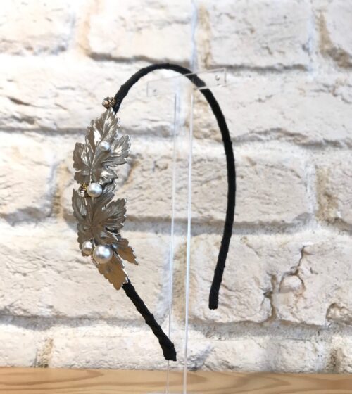 Bronz İnci Ve Kristal Taşlı Yaprak Detaylı Taç
