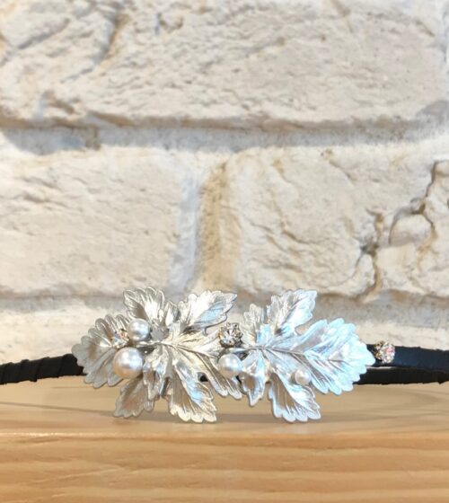 Gümüş İnci Ve Kristal Taşlı Yaprak Detaylı Taç