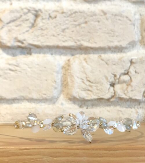 Beyaz Kristal Taşlı Çiçek Detaylı Taç