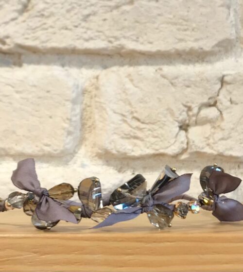 Koyu Gri Kurdela Detaylı Kristal Taşlı Taç