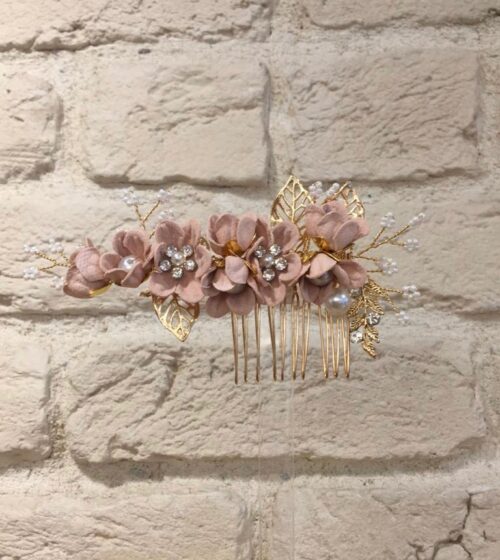 Pudra Çiçek İncili ve Taş Detaylı Tarak