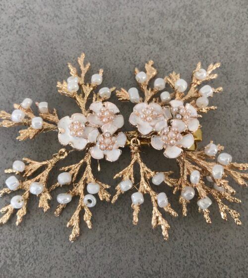 Gold Beyaz Çiçek Boncuk Detaylı Kıskaçlı Saç Aksesuarı