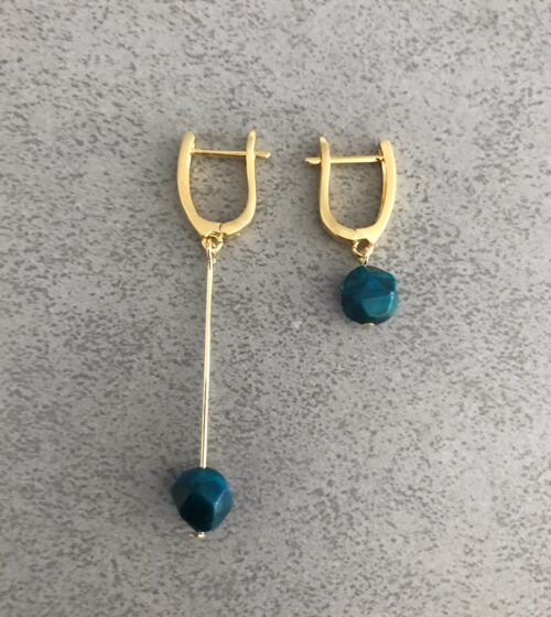 Pudra-Lacivert Doğal Taş Detaylı Küpe