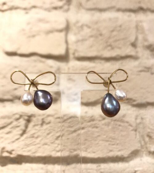 Koyu Gri Doğal İnci Detaylı Fiyonk Küpe