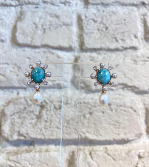 Açık Mavi Doğal Taş ve Gerçek İncili Küpe