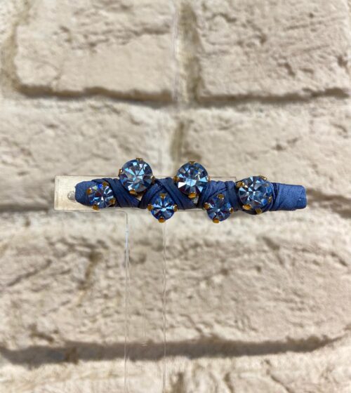 Lacivert Çiçek Taş Detaylı At Kuyruğu Tokası