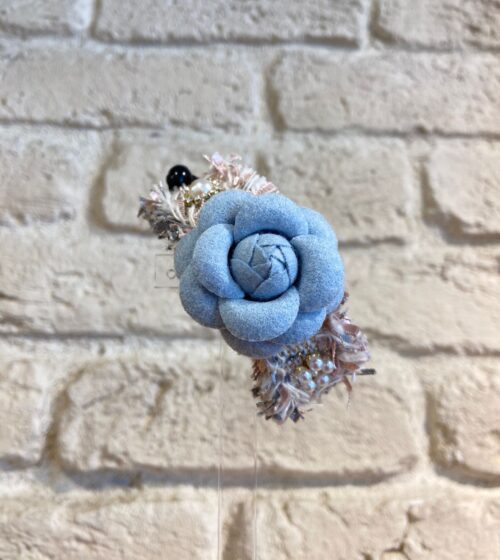 Mavi Çiçek Tüvit Kumaş At Kuyruğu Tokası