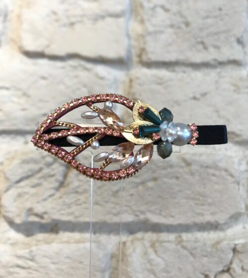 Pudra Yaprak Formlu Gerçek İnci Ve Kristal Taşlı Toka