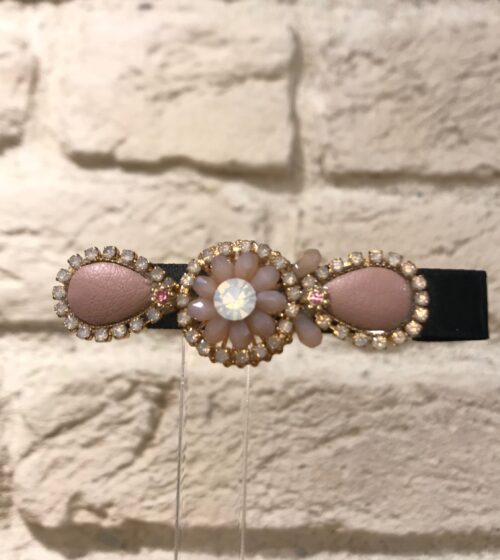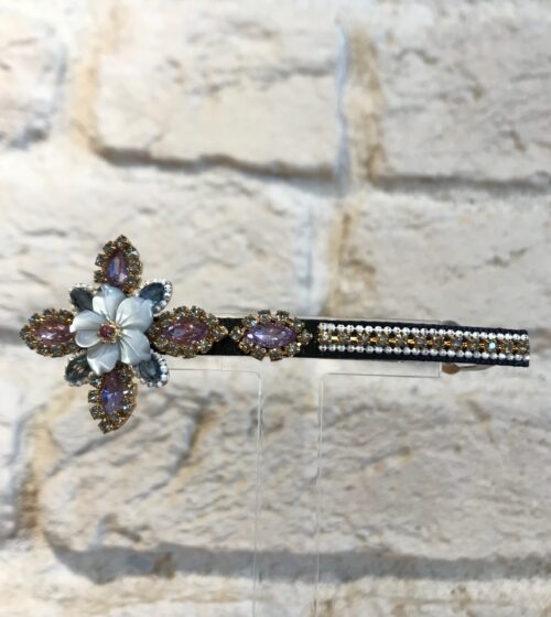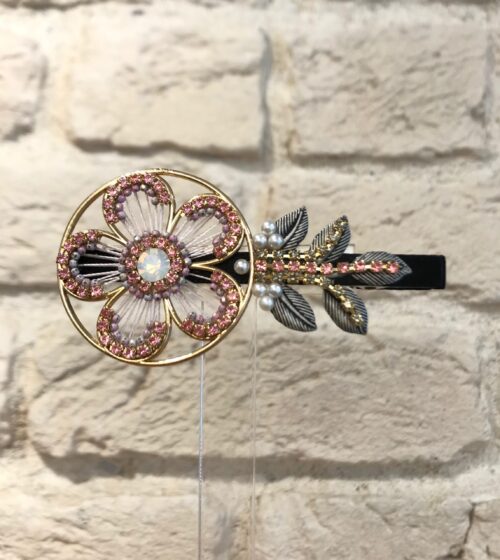 Pudra Çiçek Kristal Taş Detaylı At Kuyruğu Tokası