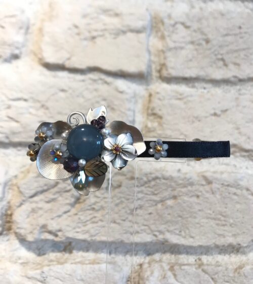 Mavi Desenli Kristal Taş Ve Metal Çiçek Detaylı Toka