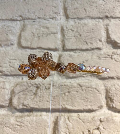 Bej Kristal Taş Ve İncili Yaprak Toka
