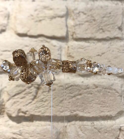 Beyaz Fiyonk Formunda Kristal Taş İnci Ve Çiçek Süslemeli Toka