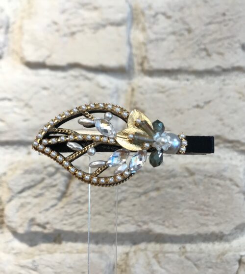 Beyaz Yaprak Formlu Gerçek İnci Ve Kristal Taşlı Toka